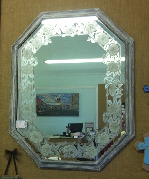 | Large hanging mirror with beautiful floral designs, now only $62 at 540 Mercantile! |